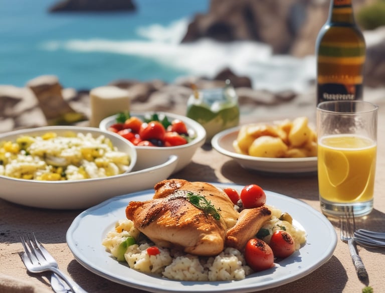 Includes a freshly grilled chicken meal, seasonal risotto, Greek salad, potatoes, and unlimited refreshing soft drinks