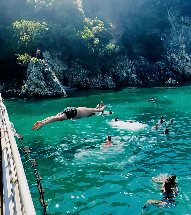 "Relax aboard our elegant and spacious boat with all-inclusive package, sun-soaked decks and unforgettable beach stops ”